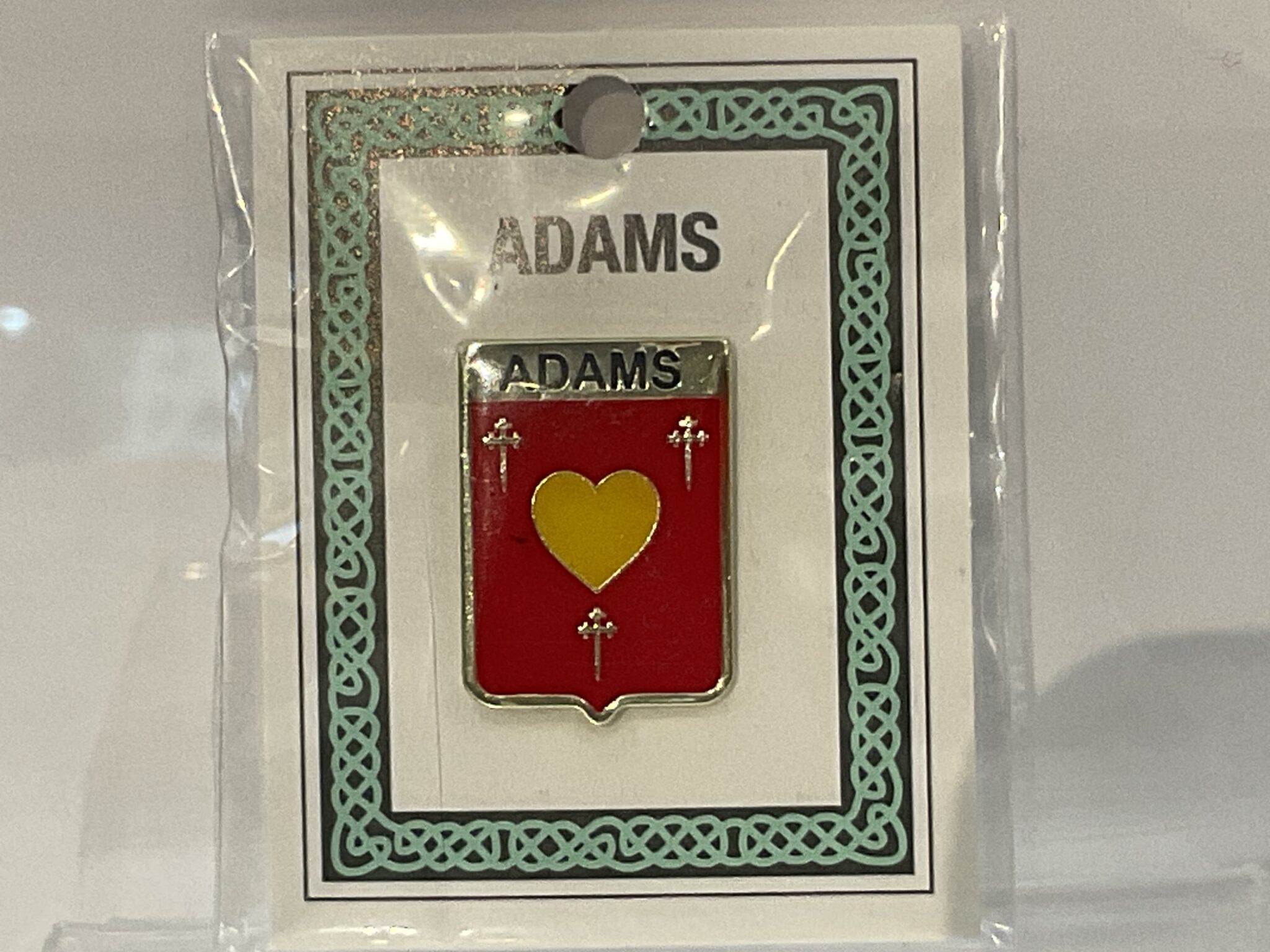 The Adams Pinbadge doesn’t fit your family heritage? No problem! We carry a wide variety of family crests in pinbadges, keychains, coasters, and more. Feel free to contact the store if you do not see your family available.