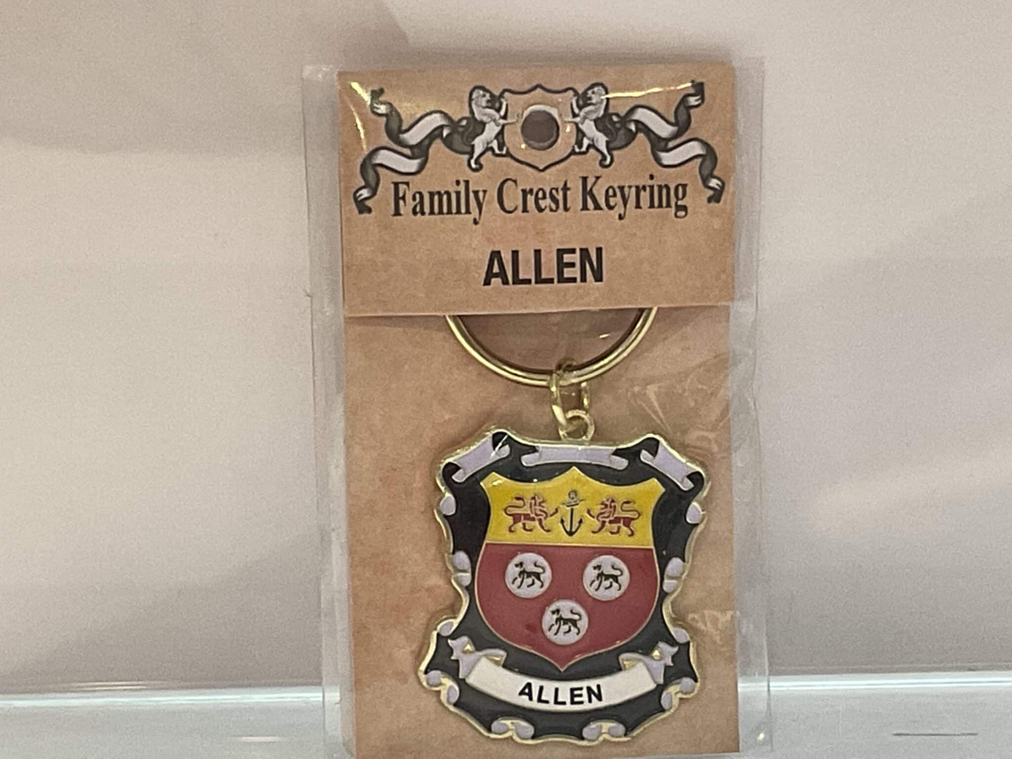 The Allen Keyring doesn’t fit your family heritage? No problem! We carry a wide variety of family crests in pinbadges, keychains, coasters, and more. Feel free to contact the store if you do not see your family available.