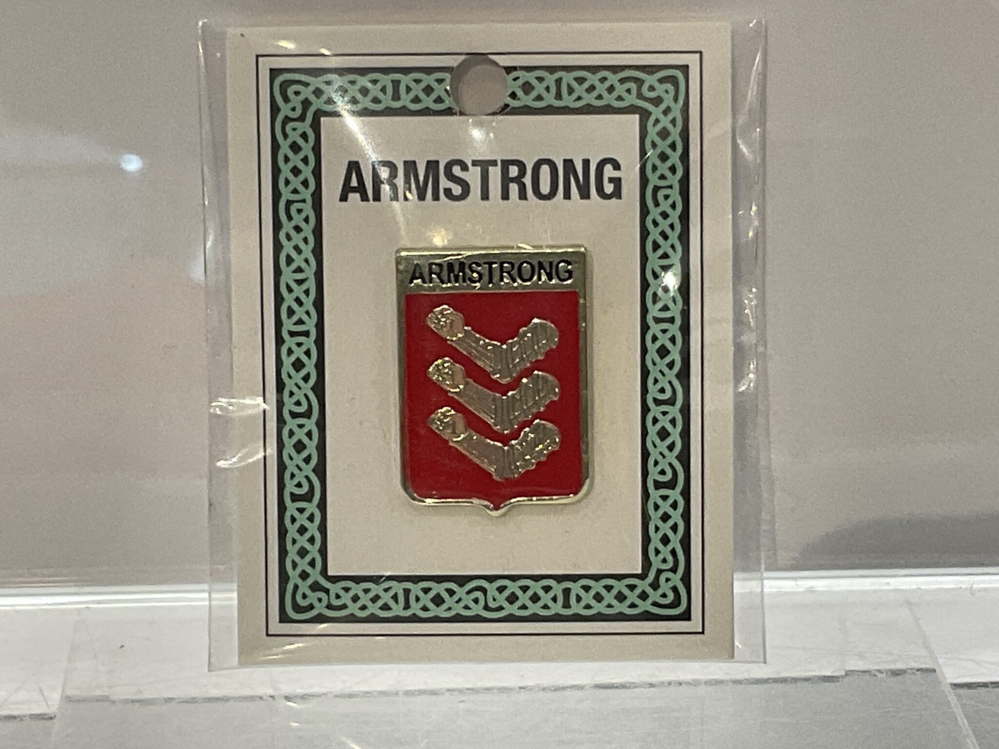 The Armstrong Pinbadge doesn’t fit your family heritage? No problem! We carry a wide variety of family crests in pinbadges, keychains, coasters, and more. Feel free to contact the store if you do not see your family available.