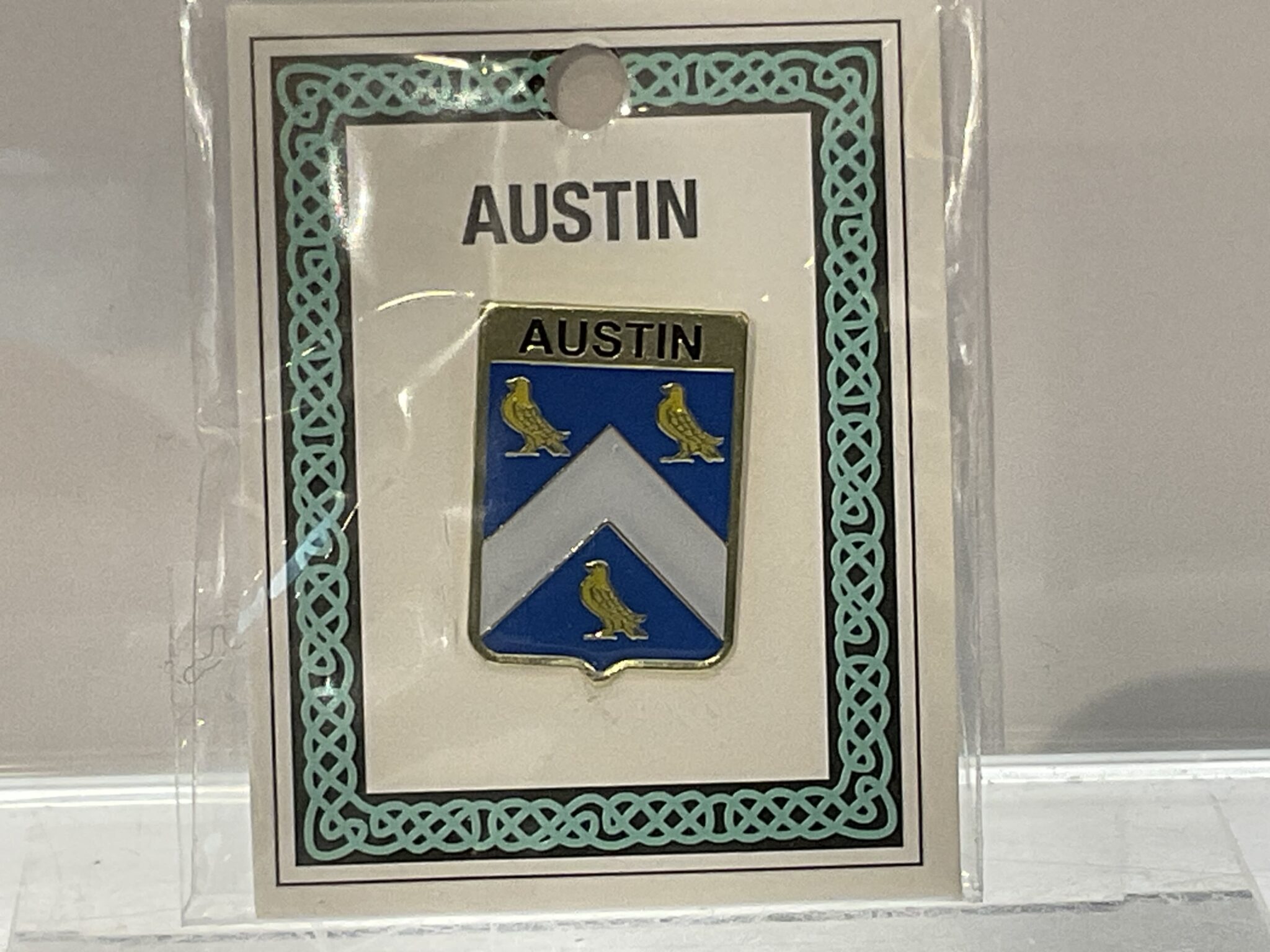 The Austin Pinbadge doesn’t fit your family heritage? No problem! We carry a wide variety of family crests in pinbadges, keychains, coasters, and more. Feel free to contact the store if you do not see your family available.