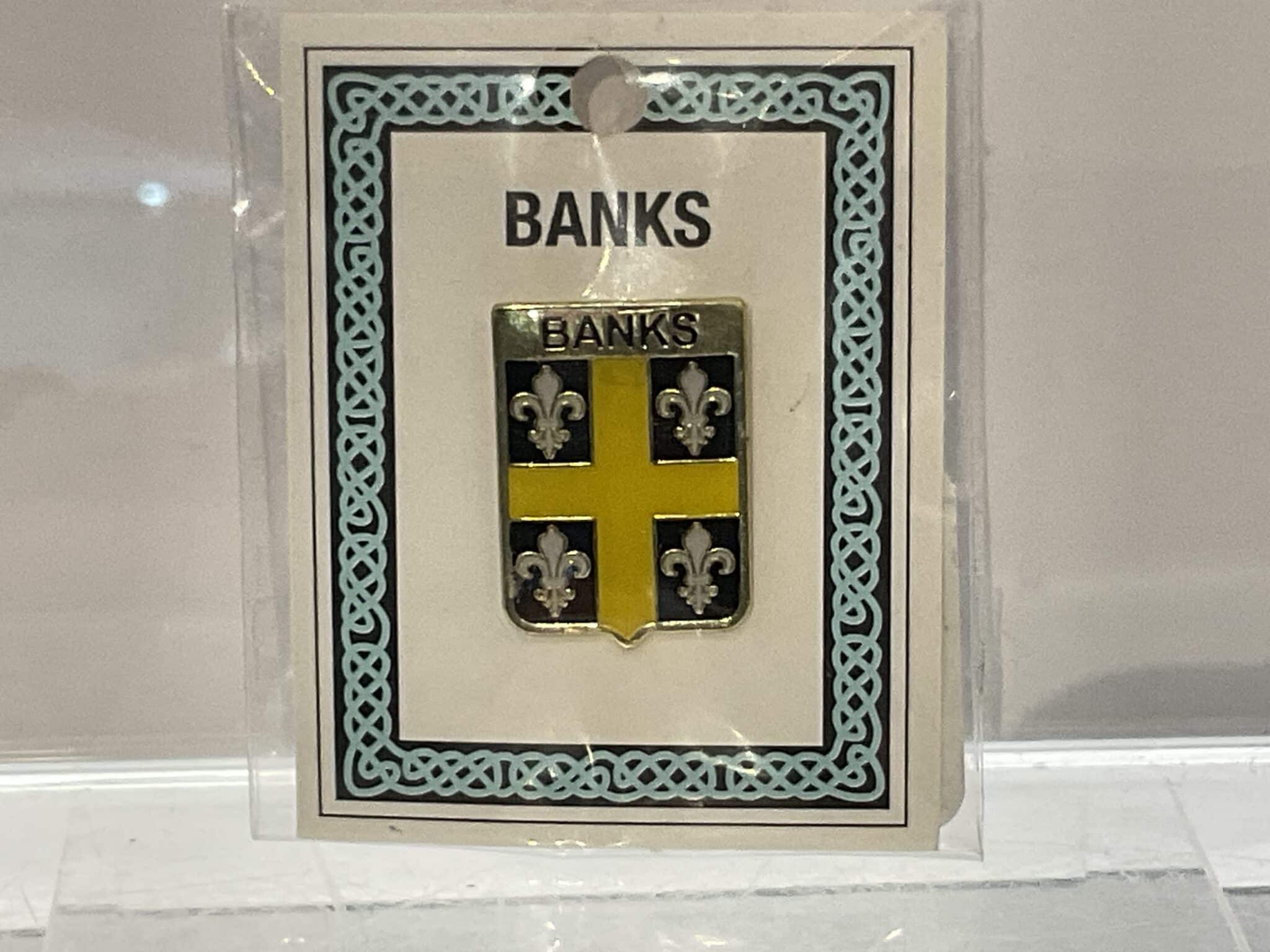 The Banks Pinbadge doesn’t fit your family heritage? No problem! We carry a wide variety of family crests in pinbadges, keychains, coasters, and more. Feel free to contact the store if you do  not see your family available.