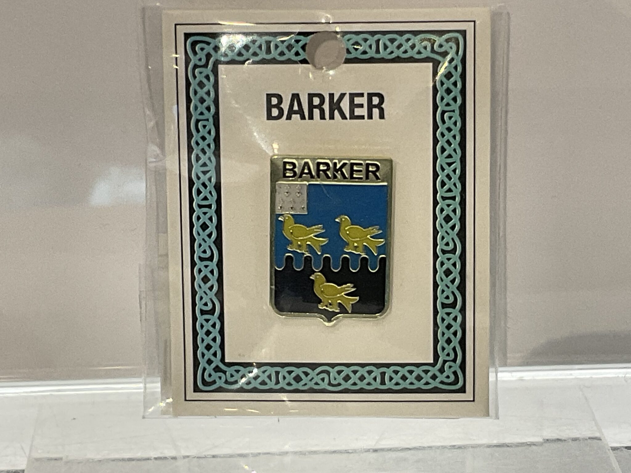 The Barker Pinbadge doesn’t fit your family heritage? No problem! We carry a wide variety of family crests in pinbadges, keychains, coasters, and more. Feel free to contact the store if you do not see your family available.