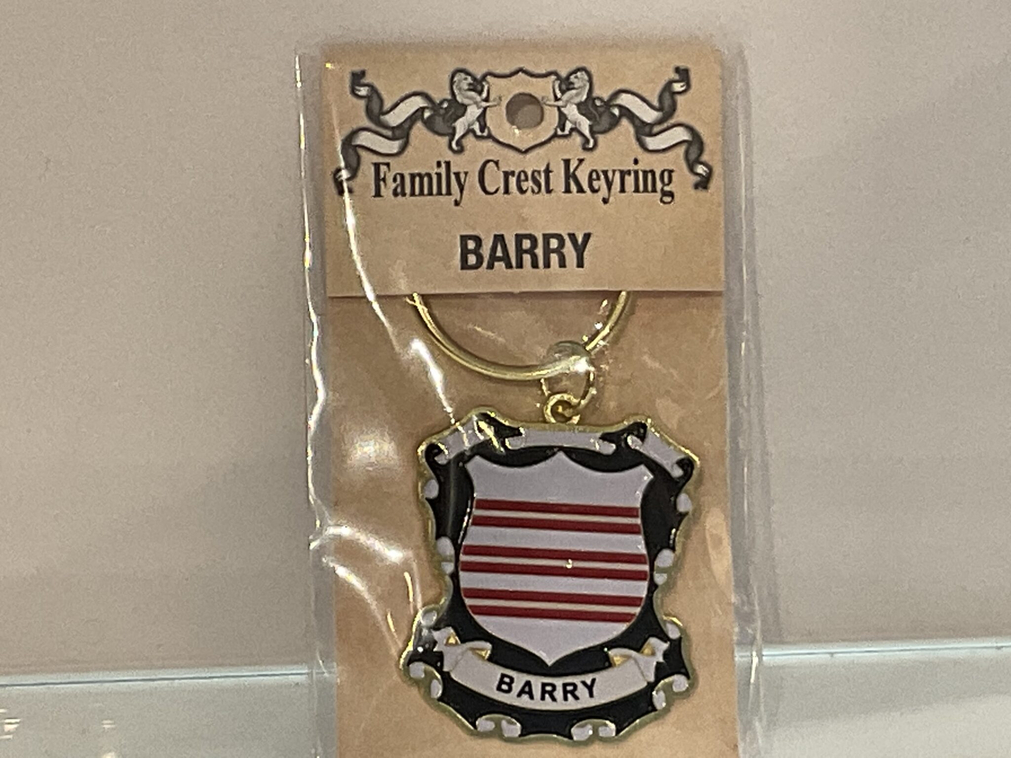 The Barry Keyring doesn’t fit your family heritage? No problem! We carry a wide variety of family crests in pinbadges, keychains, coasters, and more. Feel free to contact the store if you do not see your family available.