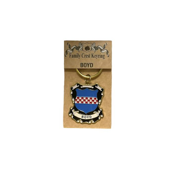 The Boyd Keyring doesn’t fit your family heritage? No problem! We carry a wide variety of family crests in pinbadges, keychains, coasters, and more. Feel free to contact the store if you do not see your family available.