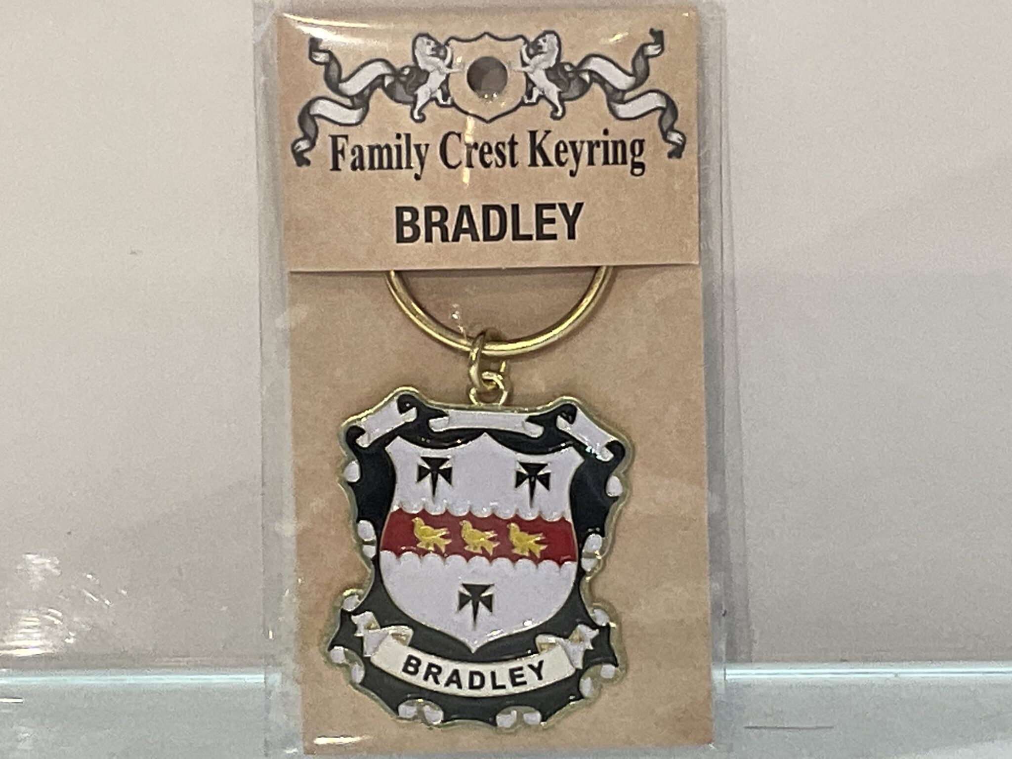 The Bradley Keyring doesn’t fit your family heritage? No problem! We carry a wide variety of family crests in pinbadges, keychains, coasters, and more. Feel free to contact the store if you do not see your family available.