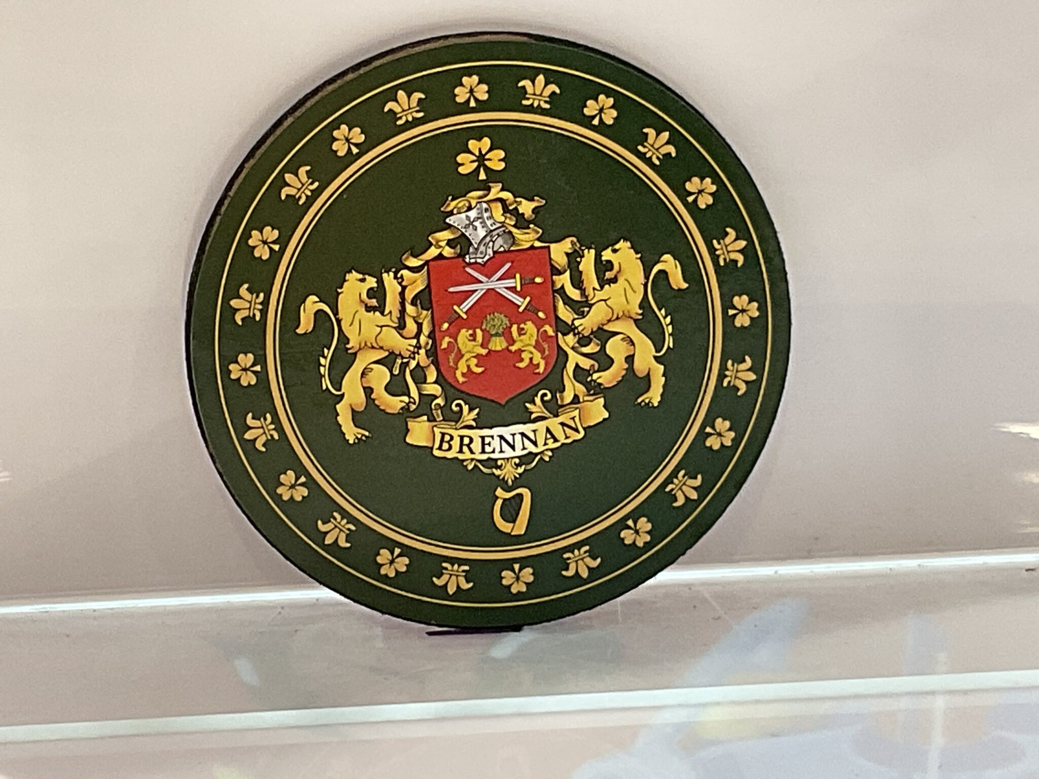 The Brennan Coaster doesn’t fit your family heritage? No problem! We carry a wide variety of family crests in pinbadges, keychains, and more. Feel free to contact the store if you do not see your family available.