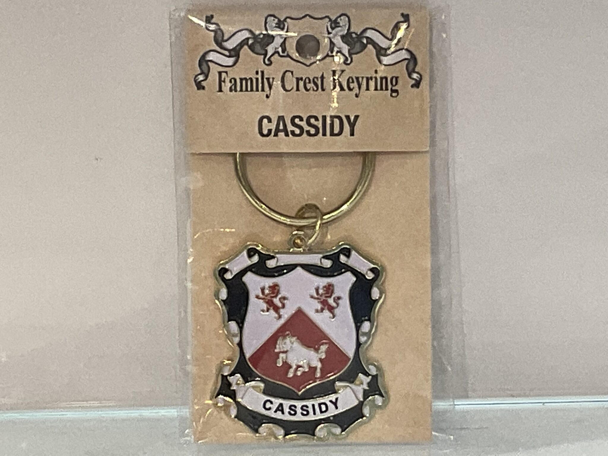 The Cassidy Keyring doesn’t fit your family heritage? No problem! We carry a wide variety of family crests in pinbadges, keychains, coasters, and more. Feel free to contact the store if you do not see your family available