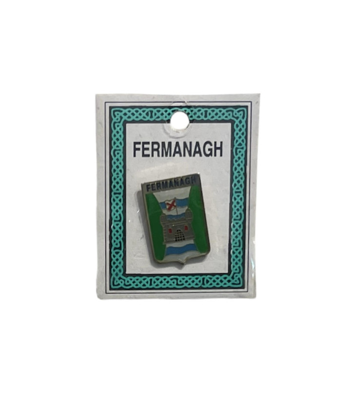 Of our heraldry and county items, the pinbadge is the most versatile. Wear it on your cap, your backpack, your sweater, or even your shoe! The county pinbadges are perfect to represent your clann or give homage to your ancestors on either side of the family tree, without committing to a specific clann. The County Fermanagh Pinbadge represents County Fermanagh, located in Northern Ireland and well known for being a peaceful retreat amidst Ireland’s rugged landscape. It is renowned for its tranquil lakelands, such as Lough Erne, which offers picturesque scenery and water-based activities.