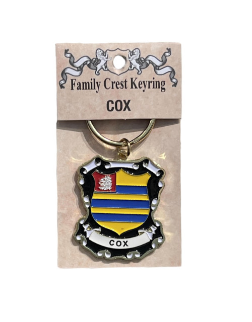 The Cox Keyring doesn’t fit your family heritage? No problem! We carry a wide variety of family crests in pinbadges, keychains, coasters, and more. Feel free to contact the store if you do not see your family available.