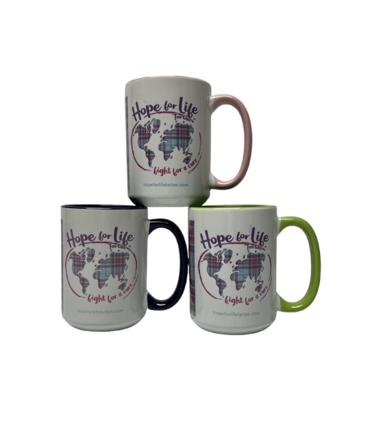 A mug with a purpose! The Hope for Life Mug is colorful yet so special. The Hope For Life Mug, like all of the other items in the exclusive range, was designed so each of the six vibrant colors has a significance. Pink represents Breast Cancer, light blue for Prostate Cancer, lime green for Lymphoma, lavender for All Cancers, white for Lung Cancer, and Purple to honor Caregivers.