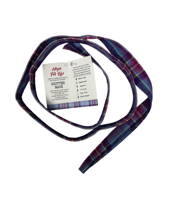 Once the tartan was developed, Donegal Square enlisted its customer base to name the tartan. The name “Hope for Life” was chosen because of our hope that someday cancer research will result in a cure.