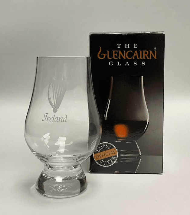 The Glencairn Crystal Nosing Glass is specifically designed to optimize the whiskey drinking experience. The unique shape of the glass allows the whiskey drinker to experience all the nuances and complexities of fine whiskey. The Ireland Harp Nosing Glass is extra special because it has a harp above “Ireland” to give homage to Ireland, additionally to the Scottish manufacturing.