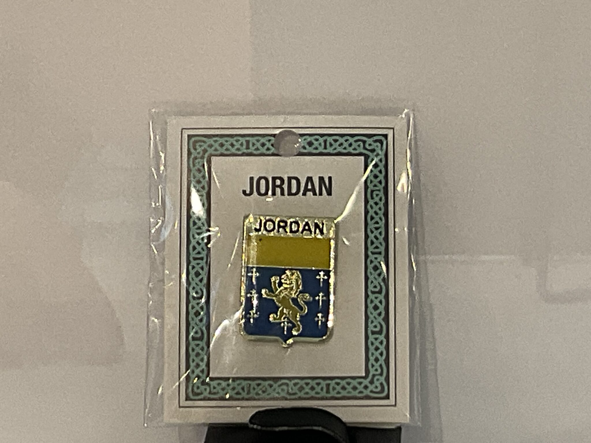 The Jordan Pinbadge doesn’t fit your family heritage? No problem! We carry a wide variety of family crests in pinbadges, keychains, coasters, and more. Feel free to contact the store if you do  not see your family available.