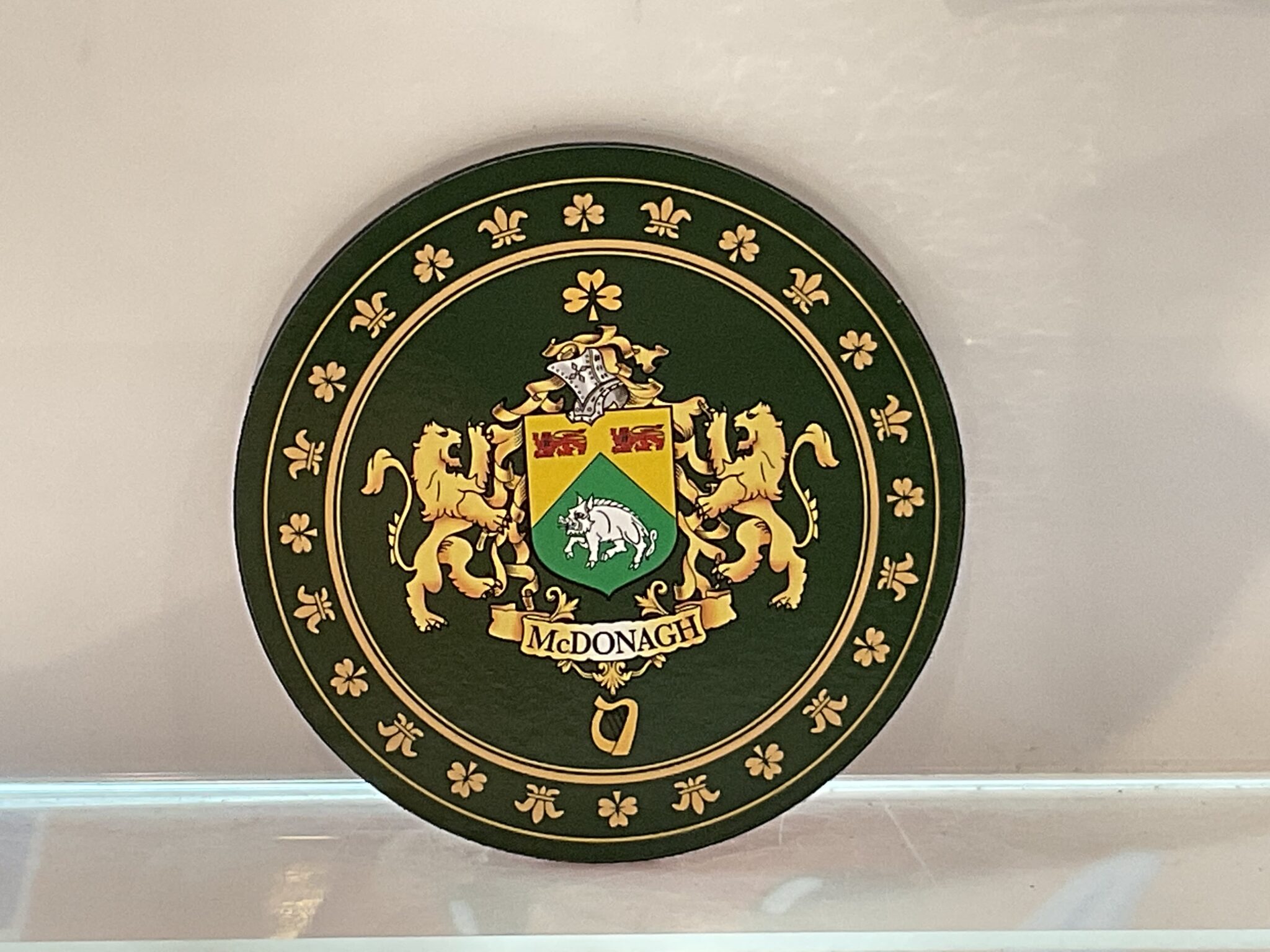 The McDonagh Coaster doesn’t fit your family heritage? No problem! We carry a wide variety of family crests in pinbadges, keychains, and more. Feel free to contact the store if you do not see your family available.