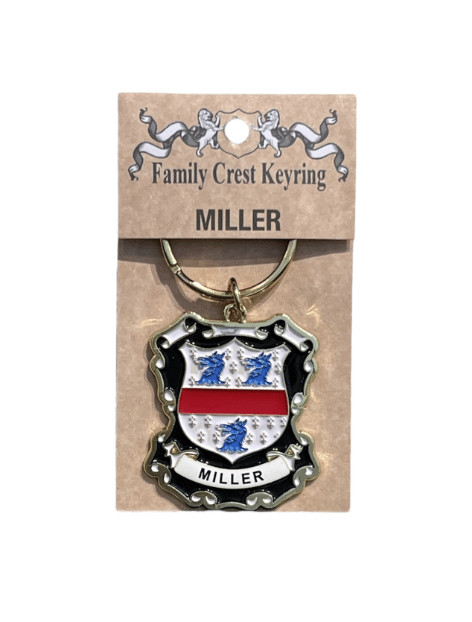 The Miller Keyring doesn’t fit your family heritage? No problem! We carry a wide variety of family crests in pinbadges, keychains, coasters, and more. Feel free to contact the store if you do not see your family available.
