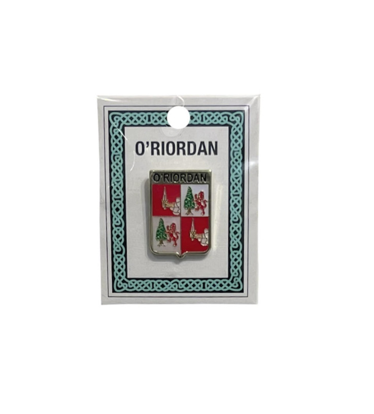 The O’Riordan Pinbadge doesn’t fit your family heritage? No problem! We carry a wide variety of family crests in pinbadges, keychains, coasters, and more. Feel free to contact the store if you do not see your family available.
