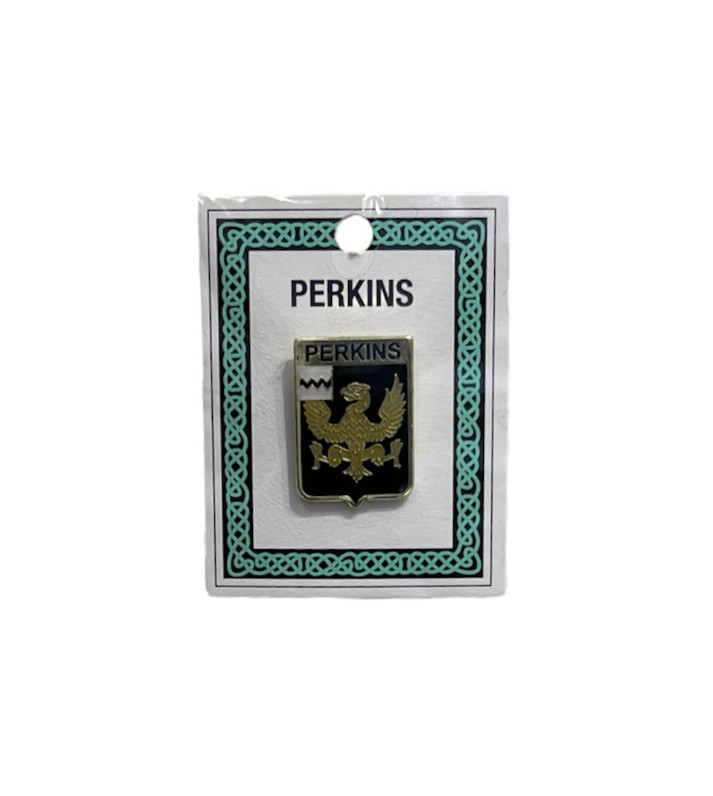 The Perkins Pinbadge doesn’t fit your family heritage? No problem! We carry a wide variety of family crests in pinbadges, keychains, coasters, and more. Feel free to contact the store if you do  not see your family available.