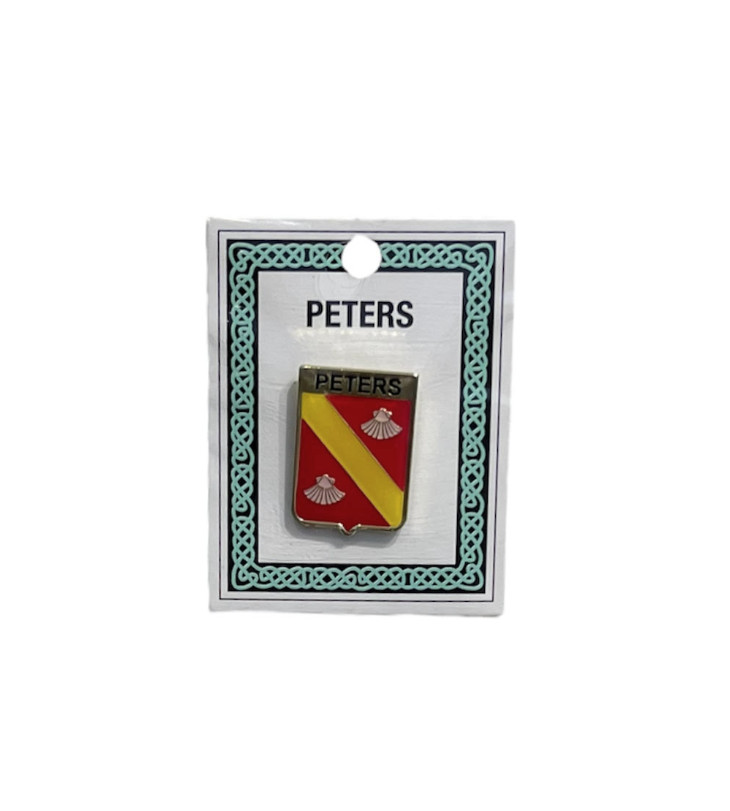The Peters Pinbadge doesn’t fit your family heritage? No problem! We carry a wide variety of family crests in pinbadges, keychains, coasters, and more. Feel free to contact the store if you do not see your family available.