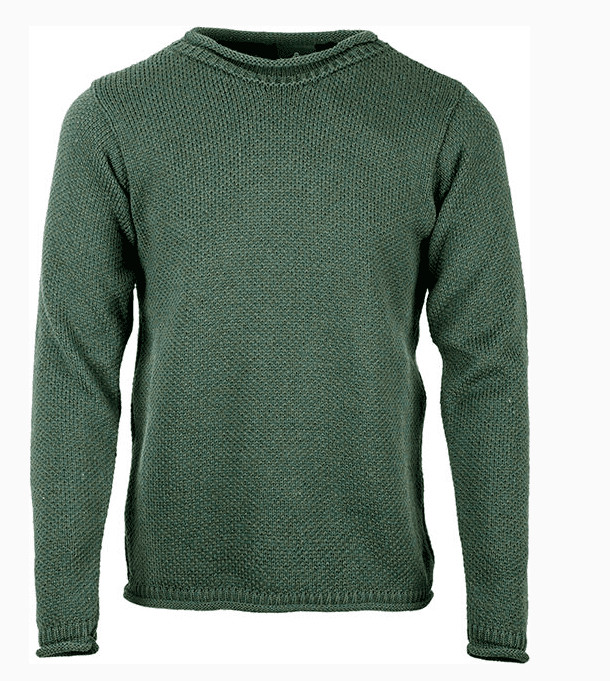 The Roll Neck Sweater from Aran Woolen Mills is a hearty sweater that will give your outfit a heritage-inspired look. Once worn by Irish fishermen daily, this sweater has a distinctive rolled edge on the collar, hem, and cuff.  This highly versatile sweater works well with a collared shirt or casually with jeans.  It is one you will reach for time and time again.