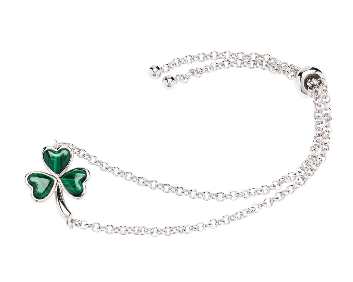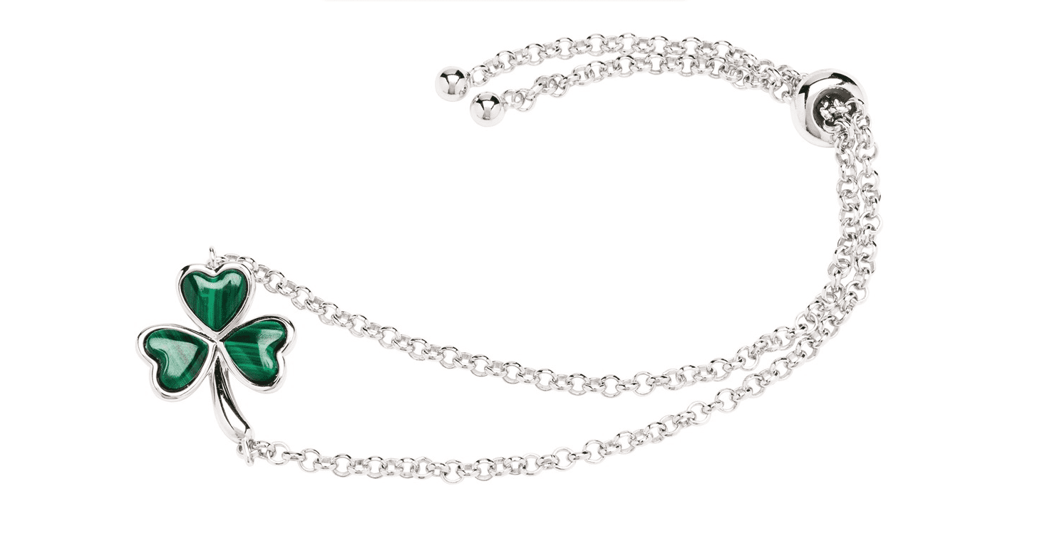 The shamrock is a three-leafed clover associated with various symbolic meanings throughout history. Over time, the shamrock became an emblem of Irish identity, representing luck, good fortune, and the spirit of Ireland. The Shamrock Malachite Bracelet symbolizes just that! The sterling silver paired with the complex green of the malachite embodies Irish heritage, while maintaining modern elegance.