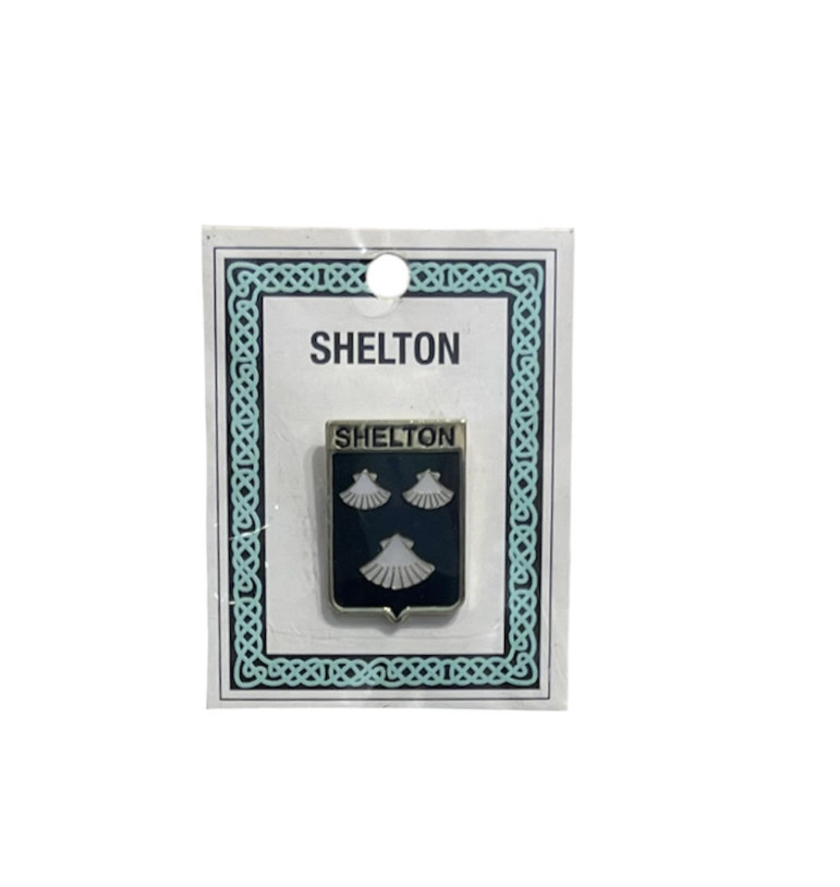 The Shelton Pinbadge doesn’t fit your family heritage? No problem! We carry a wide variety of family crests in pinbadges, keychains, coasters, and more. Feel free to contact the store if you do  not see your family available.