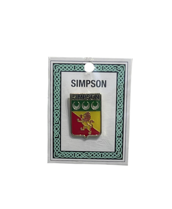 The Simpson Pinbadge doesn’t fit your family heritage? No problem! We carry a wide variety of family crests in pinbadges, keychains, coasters, and more. Feel free to contact the store if you do  not see your family available.